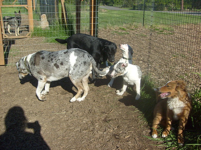 Boarding dogs get to play all day with the pack and at night they sleep with up to 6 of their best buddies in our heated and well ventilated bedroom-sized rooms